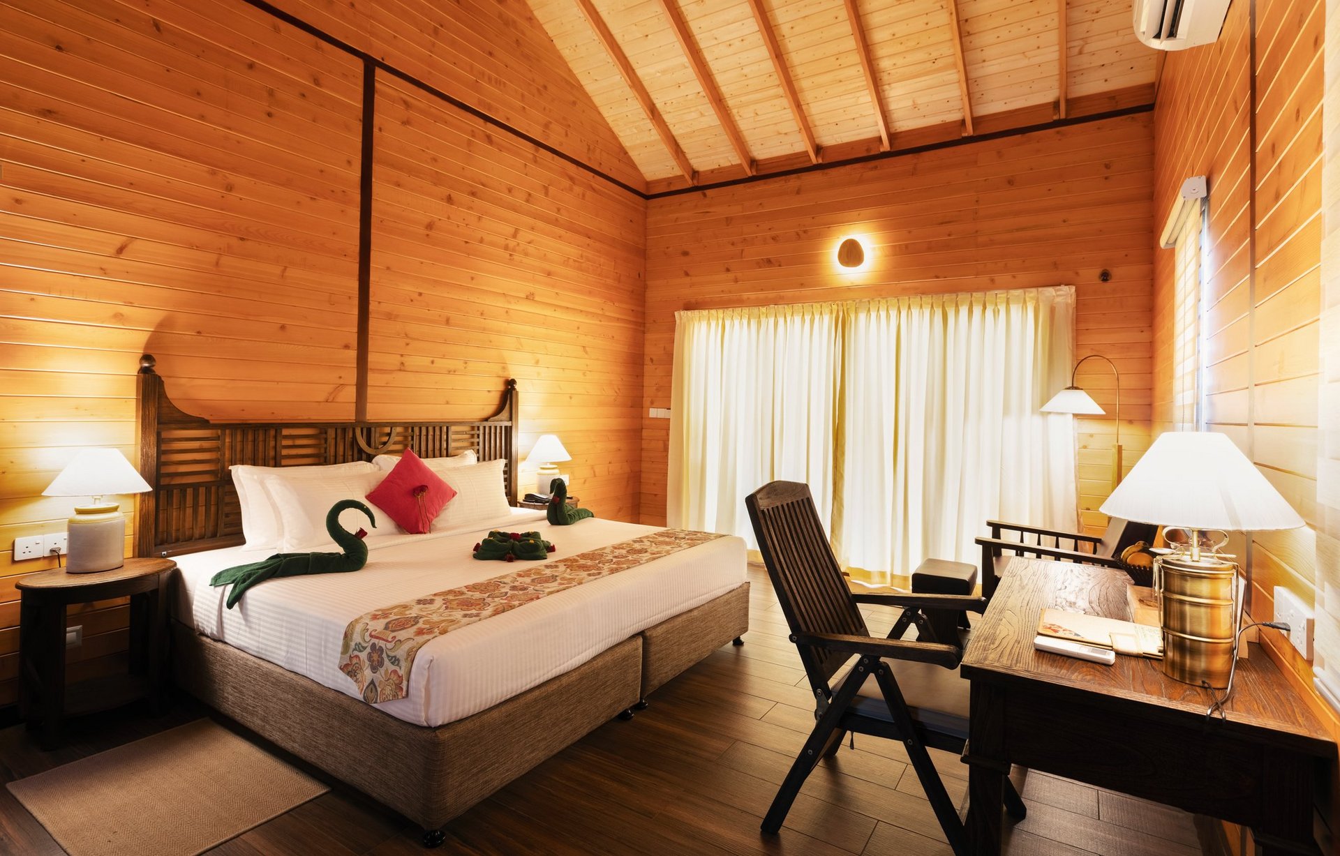 Die Wooden Premium Villen sind etwas geräumiger als die Cottages. Es handelt sich um einzeln stehende Villen, so dass Sie noch mehr Ruhe und Ungestörtheit genießen können. Die hochwertige Ausstattung lässt keine Wünsche offen. Jede Villa verfügt über eine Frei Dusche/WC, Klimaanlage und Deckenventilator, Safe und WLAN lässt keine Wünsche offen.