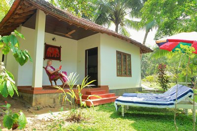 Die Ayurveda-Cottages bzw. Chalets sind harmonisch gestaltete Bungalows in traditioneller Kerala-Architektur. Sie wurden terrassenförmig direkt oberhalb der hübschen Badebucht errichtet und in die subtropische Vegetation eingepasst. Sie verfügen über eine eigene Terrasse und sind mit Bad und / oder Dusche und geschmackvollem Mobiliar ausgestattet. In jedem der Cottages befinden sich zwei separate geräumige Doppelzimmer, die Komfort und Bequemlichkeit garantieren, während die Chalets teilweise freistehend sind.