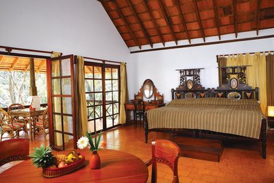 The Nest ist ein traditionelles Kerala-Holzhaus mit exklusiver Ausstattung. Ein wenig abseits von den anderen Bungalows liegt es auf dem höchsten Punkt der Anlage oberhalb des Pools. Mit rund 290 Quadratmetern bietet es viel Raum zur Entspannung mit einem behaglich möbliertem Wohnzimmer, einem Schlafzimmer, zwei Bädern und einer Terrasse. Wlan und Telefon stehen ebenfalls zu Verfügung. Für ausreichend Luftzirkulation sorgen moderne Deckenventilatoren.