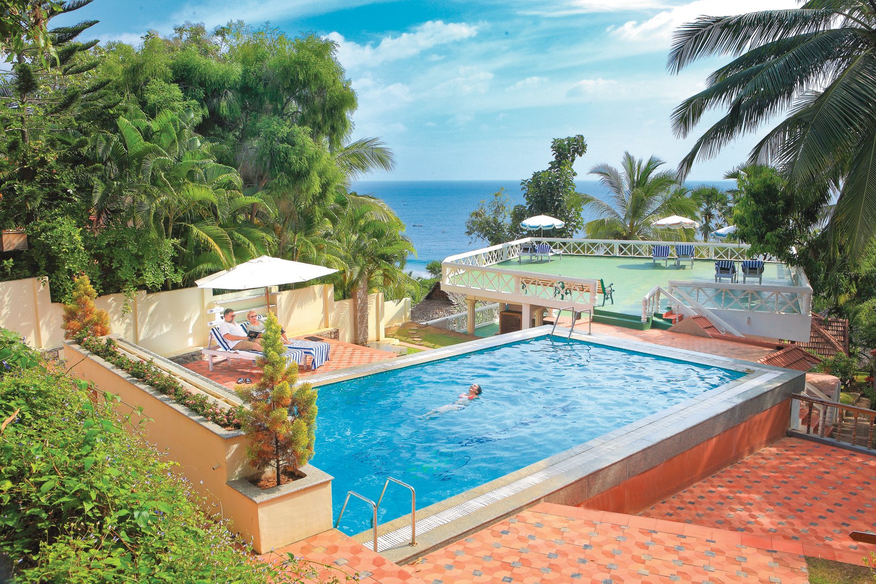 Das Resort liegt auf einem Hügel an Keralas Südwestküste, direkt am Arabischen Ozean. Ein tropischer Garten mit prächtigen Orchideen umgibt die Gebäude, die sich in verschiedene Kategorien gliedern: traditionelle Bungalows in Kerala-Architektur oberhalb einer Badebucht, Beach-Chalets nahe dem Ayurveda-Zentrum sowie das exklusive Holzhaus „The Nest" am höchsten Punkt der Anlage. Alle Unterkünfte verfügen über eigene Terrassen. Das ökologisch angelegte Resort wird umweltfreundlich betrieben und legt besonderen Wert auf die Privatsphäre seiner Gäste.