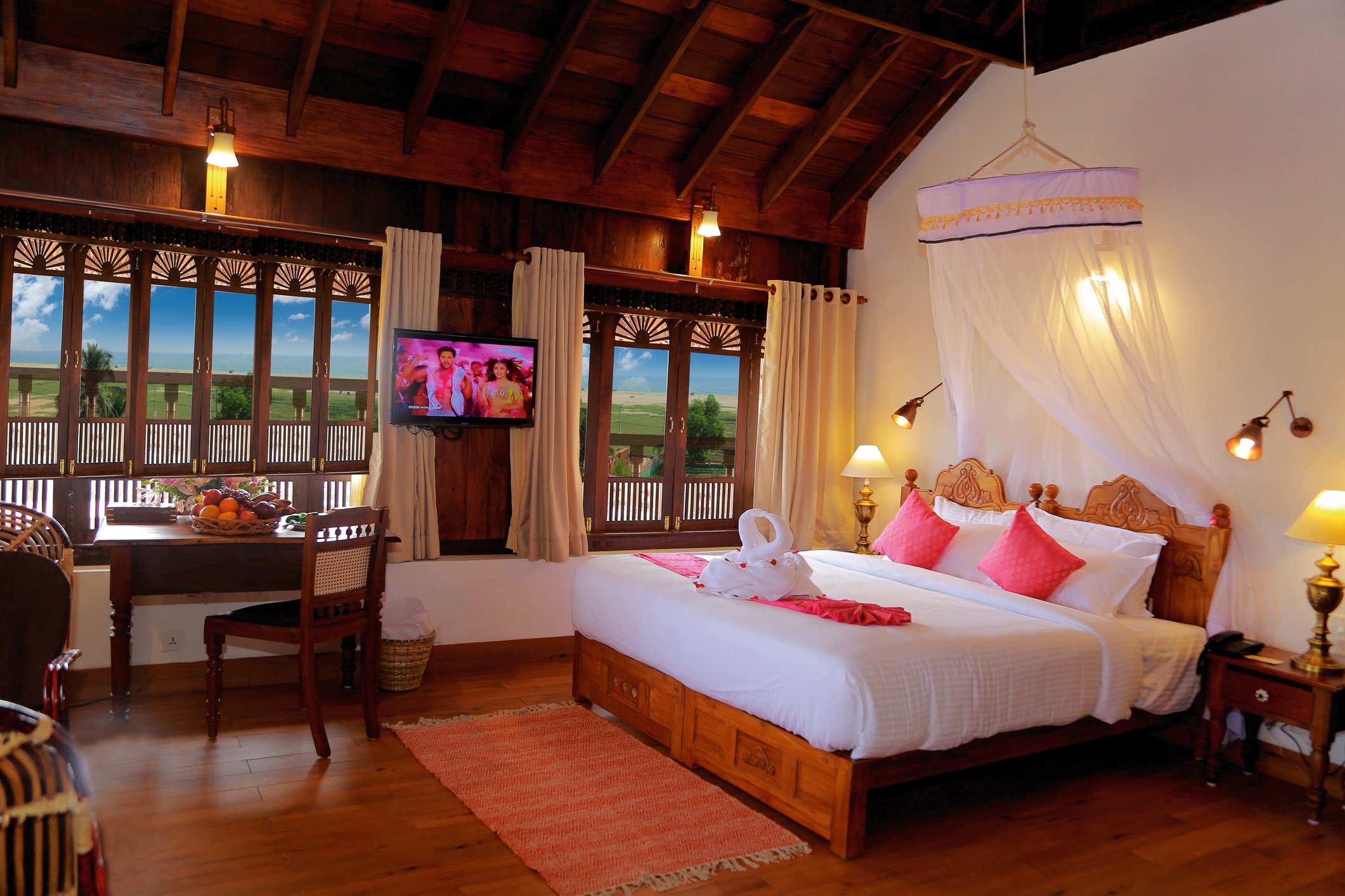 Das Resort liegt unmittelbar am langen Sandstrand von Chowara, fernab vom Trubel der Touristenorte. Die traditionelle Kerala-Architektur mit handgeschnitzten Holzelementen und natürlichen Steinmauern schafft eine Atmosphäre königlicher Ruhe. Vom eigenen Balkon blicken Sie über tropische Gärten oder direkt auf den Arabischen Ozean. Die Abgeschiedenheit unterstützt den Kurverlauf – hier können die Sinne zur Ruhe kommen, während das sanfte Meeresrauschen den natürlichen Rhythmus des Körpers wiederherstellt.
