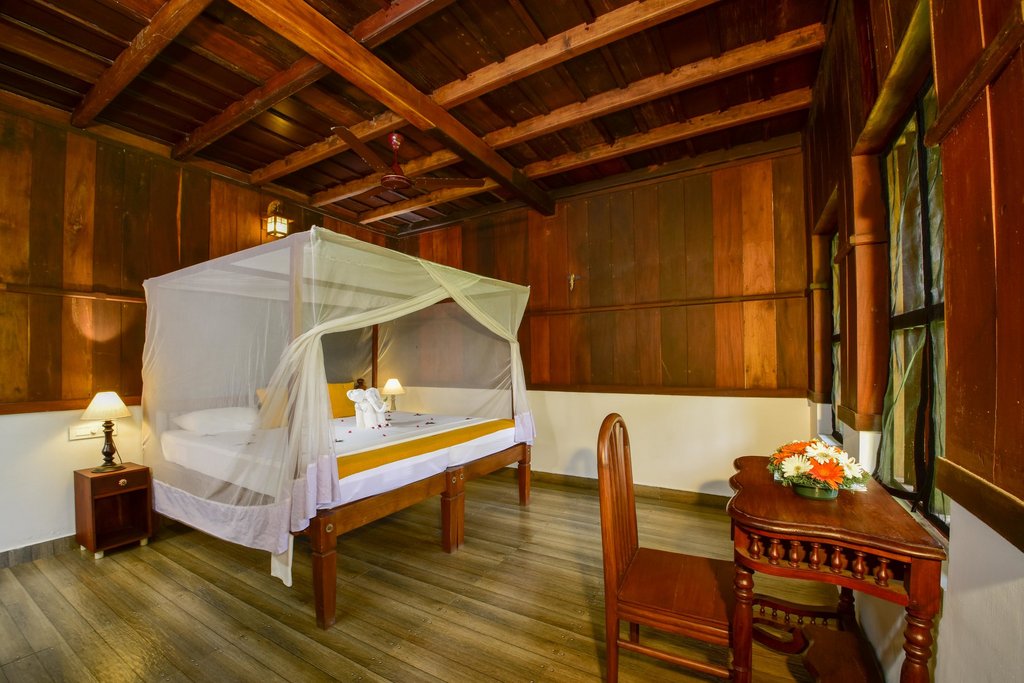 Im Anschluss fahren Sie weiter in die Backwaters, wo Sie eine friedliche Atmosphäre und unvergleichlich schöne Wasserlandschaft erwartet. Man erwartet Sie bereits in Ihrem schönen Resort direkt am Wasser. Nach dem Zimmerbezug lassen Sie sich von der sanften Brise und dem leisen Plätschern des Wassers verzaubern, während Sie entspannt in einem traditionellen Kanu durch die verschlungenen Wasserwege gleiten. Vorbei an üppig grünen Palmenhainen und malerischen Dörfern, erleben Sie das authentische Leben der Einheimischen hautnah und beobachten die farbenfrohen Vögel und exotischen Pflanzen, die die Ufer säumen.