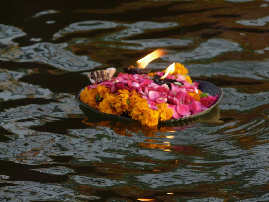 Am Abend erleben Sie die Ganga Aarti, die tägliche Lichtzeremonie am Ufer des Ganges. Priester schwingen Feuerlampen, Glocken läuten, Gesänge erfüllen die Luft – ein Ritual, das tausende Jahre alt ist und bis heute praktiziert wird.