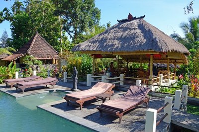Der Pool der Eco Lodge Villa Manuk hat natürliches Quellwasser und ist frei von Chlor und anderen Chemikalien.
