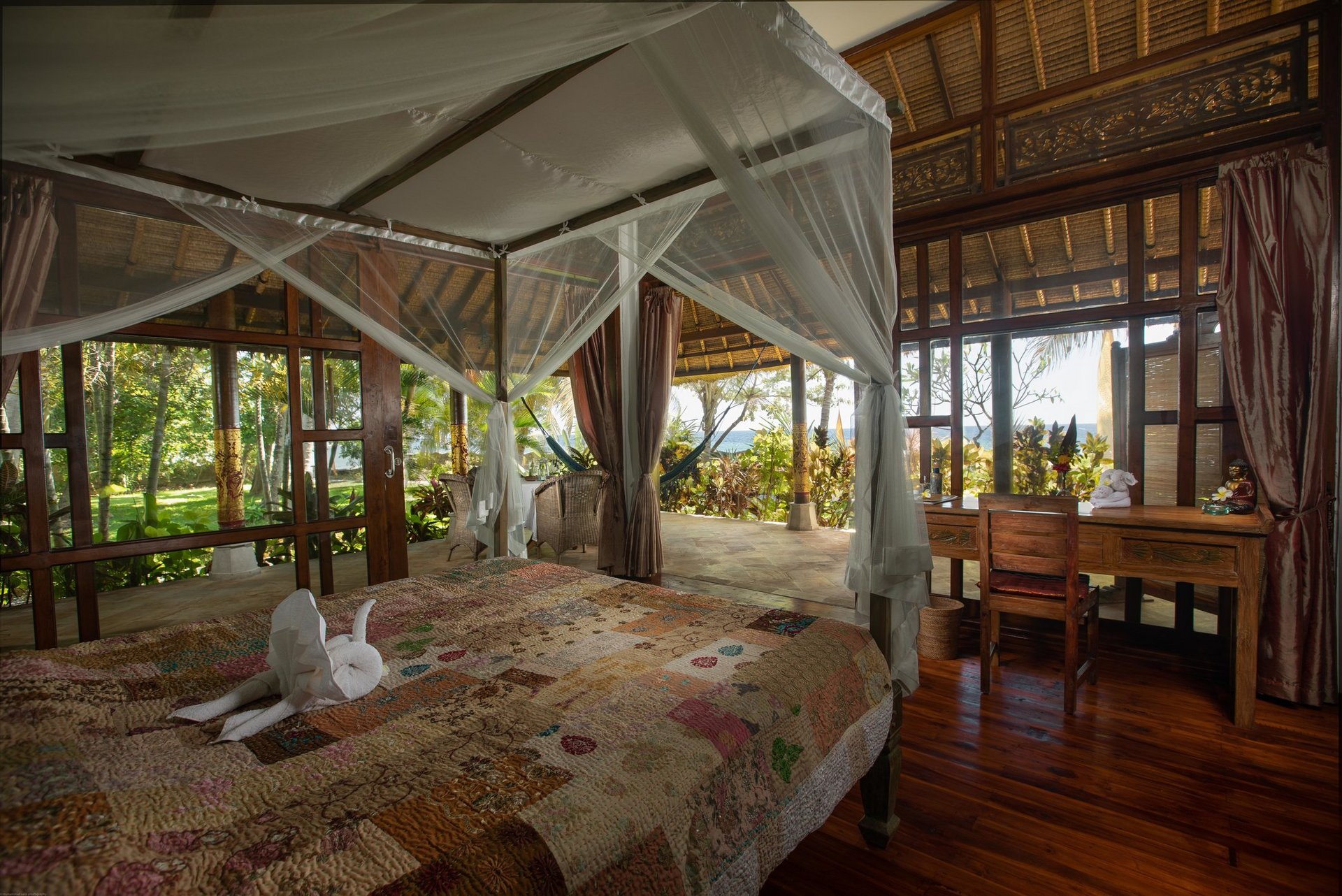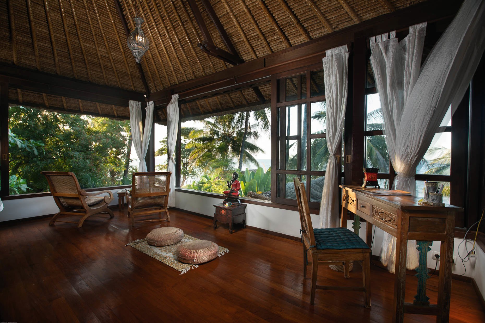 Ihr Zuhause auf Zeit liegt versteckt an der ursprünglichen Nordküste Balis, weit entfernt von Touristenströmen, wo das türkisfarbene Meer direkt vor der Tür liegt. Die sieben liebevoll eingerichteten Zimmer mit Natursteinbädern und antiken Möbeln schaffen eine Atmosphäre der Geborgenheit. Je nach Zimmer genießen Sie Meerblick vom Bett aus oder entspannen auf Ihrer privaten Terrasse. Der direkte Zugang zum Lavastrand und das vorgelagerte Korallenriff machen die Lage besonders. Umgeben von tropischen Gärten mit Kokospalmen und einem Stillegarten mit Swingbetten zwischen Palmen finden Sie hier die perfekte Balance zwischen Rückzug und natürlicher Schönheit.