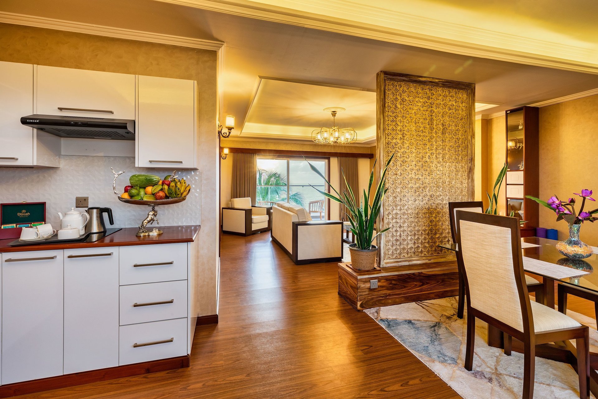 Die Master Suite besticht durch ihre moderne und hochwertige Einrichtung und den getrennten Wohn- und Schlafbereich mit begehbarem Kleiderschrank. Zudem bietet die Suite eine Einbauküche und eine Essbereich. Von dem großzügigen Balkon aus, genießen Sie einen atemberaubenden Meerblick.