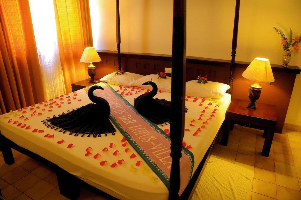 Die 20 Zimmer der Lotus Villa sind entweder zur Meerseite oder zum Garten ausgerichtet. Die Ausstattung ist schlicht, aber geschmackvoll. Statt einer Klimaanlage sorgt ein Ventilator für Abkühlung. Im Sinne des ayurvedischen Grundsatzes keine zwei Dinge zur gleichen Zeit zu tun, wurde bewusst auf TV und Telefon verzichtet. So können Sie sich in Ruhe auf Wesentliches besinnen.