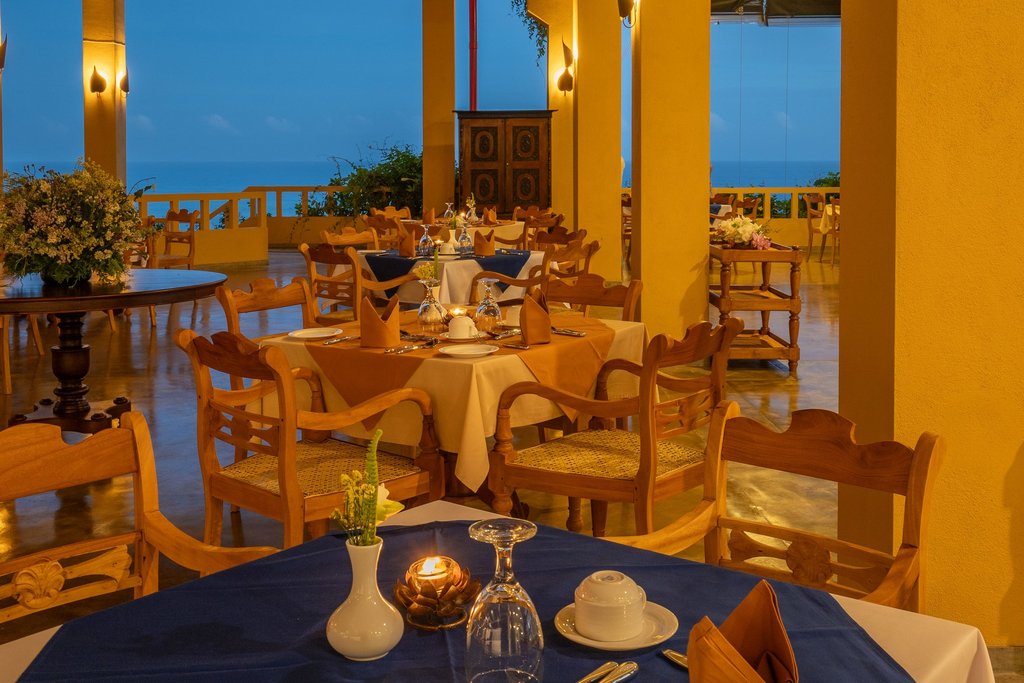In dem Restaurant mit Meerblick auf der obersten Etage können Sie die fabelhafte ayurvedische, gesunde und überwiegend vegetarische Vollpension in vollen Zügen genießen. Morgens erwartet Sie ein reichhaltiges Frühstücksbuffet, das mit gesunden Leckerbissen Ihre Sinne verwöhnt. Zu Mittag und Abend erwartet Sie eine Auswahl an Köstlichkeiten, die sowohl von einem reichhaltigen Buffet als auch einem exquisiten Menü stammen.