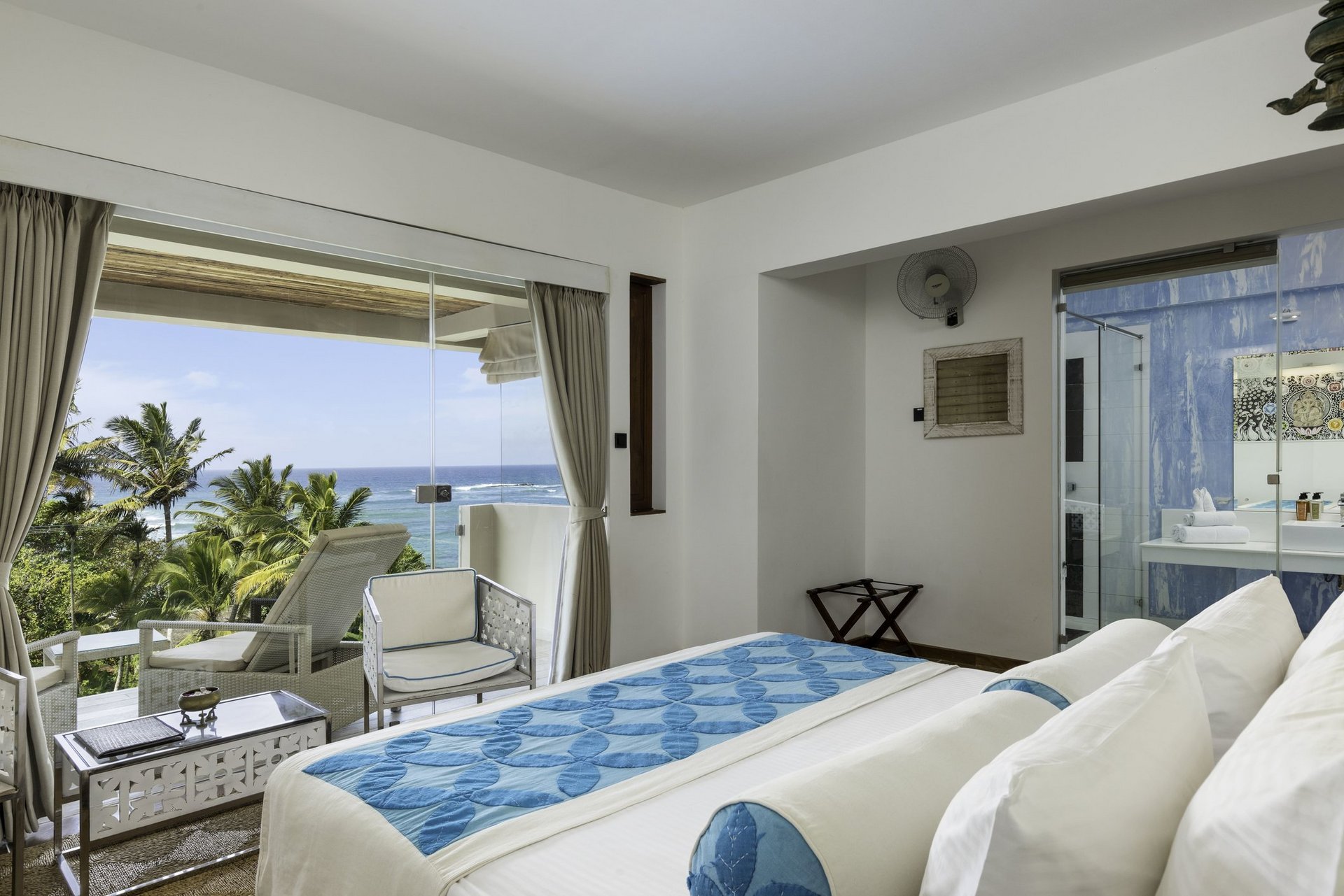 Von Ihrem Deluxe Zimmer (35-40 qm) haben Sie einen unvergleichlichen Meerblick. Durch die gläserne Front blicken Sie zum Indischen Ozean. Vom Balkon genießen Sie nachts den funkelnden Sternenhimmel! Die Zimmer bieten Ventilator, Safe, Fön, Bademäntel und, falls für Sie erforderlich und mit Ihrer Kur verträglich, natürlich auch eine moderne Klimaanlage.