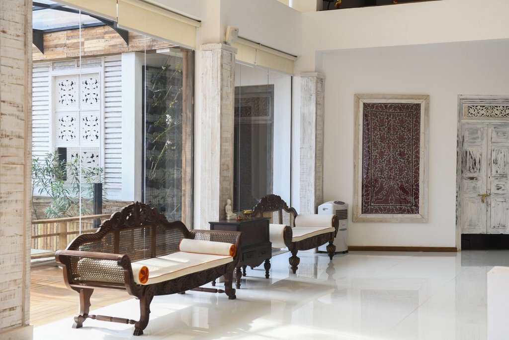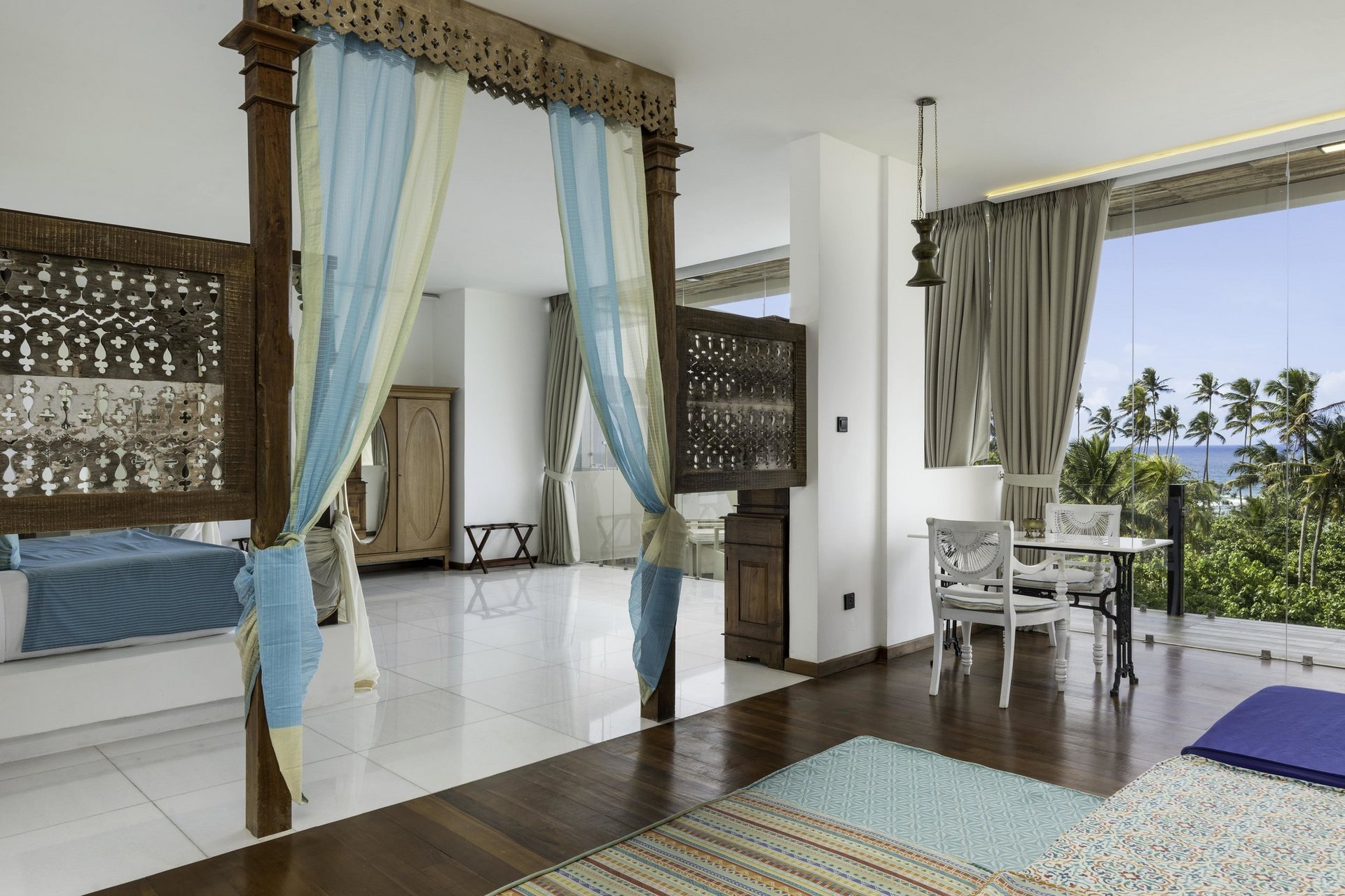 Der Hotelier Chandra Wickramasinghe gibt den modernen Zimmern Farbstimmungen mit, die sich ganzheitlich auf die Doshas beziehen und eine wohltuende Atmosphäre schaffen. Es gelingt ihm hier durch die Synthese aus hohem modernem Komfort und geschickt gewählten landestypischen Details besondere ästhetische Effekte zu kreieren.