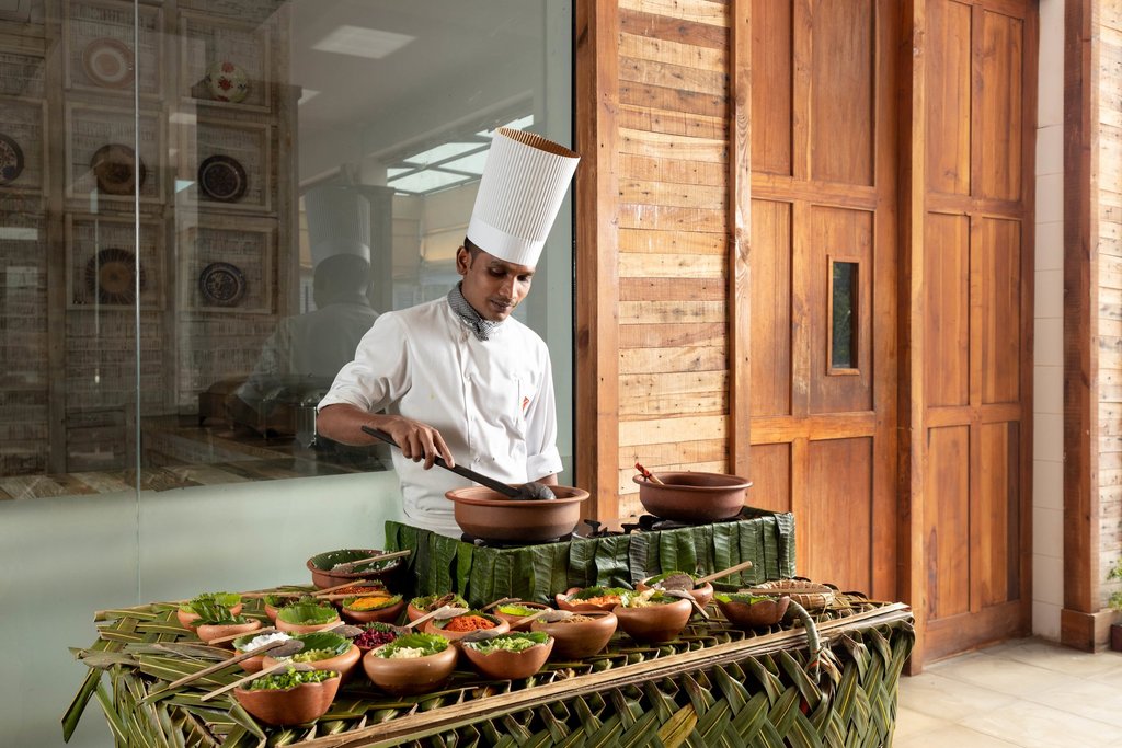 Das Ayurvie Weligama Resort ist eine Oase für Geist, Sinne und Körper, in der auch die Ernährung nachhaltig eingebunden wird. Die ayurvedische Küche wird im Restaurant oder auf der beschirmten Terrasse, mit Blick auf den Infinity Pool und den Indischen Ozean, offen präsentiert.