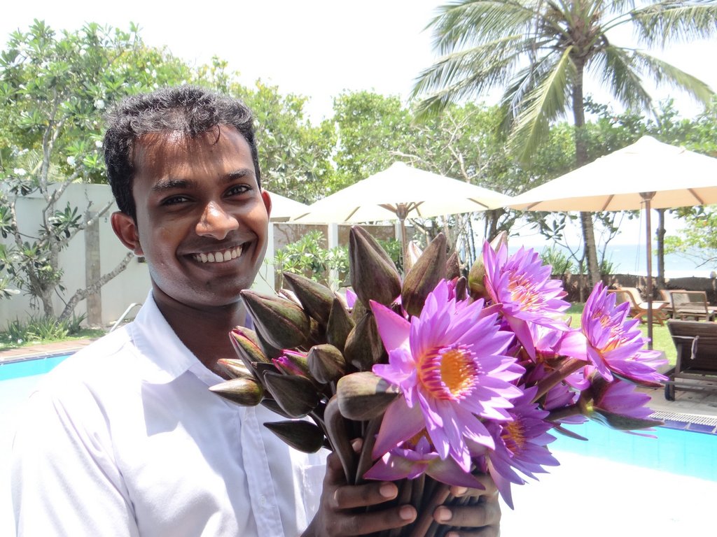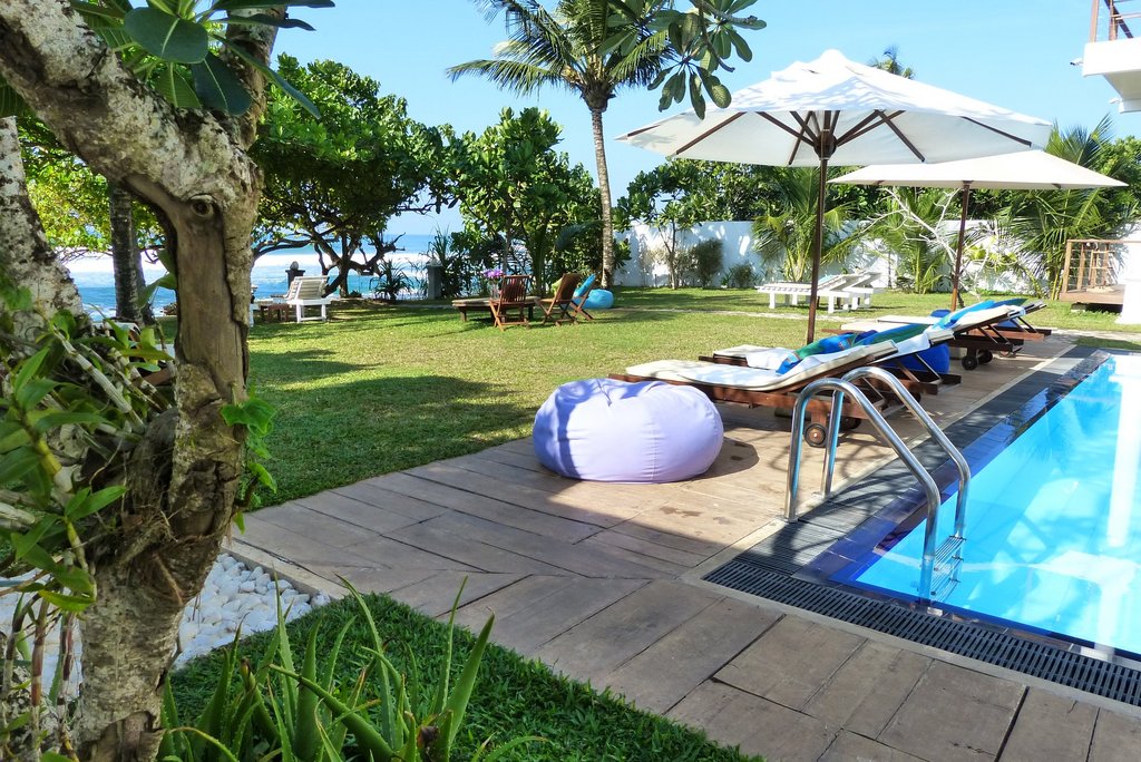 Für Strandläufer empfehlen sich Wassersandalen, da sich entlang der Küste immer wieder Felsformationen des Riffs befinden. Eine feinsandige, idyllische Badebucht befindet sich circa zehn Gehminuten vom Resort entfernt in Mirissa.