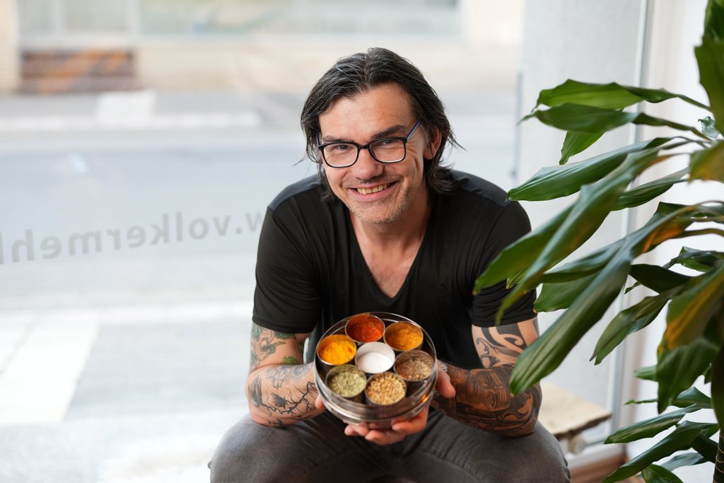 Für Volker macht die Ayurvedische Küche vor allem Achtsamkeit, Liebe und Bewusstsein aus. Beim Kochen und Backen ist für ihn das Verständnis für die Zubereitung und die Kombination verschiedener Produkte besonders wichtig um unseren Körper und unserem Stoffwechsel etwas Gutes zu tun.