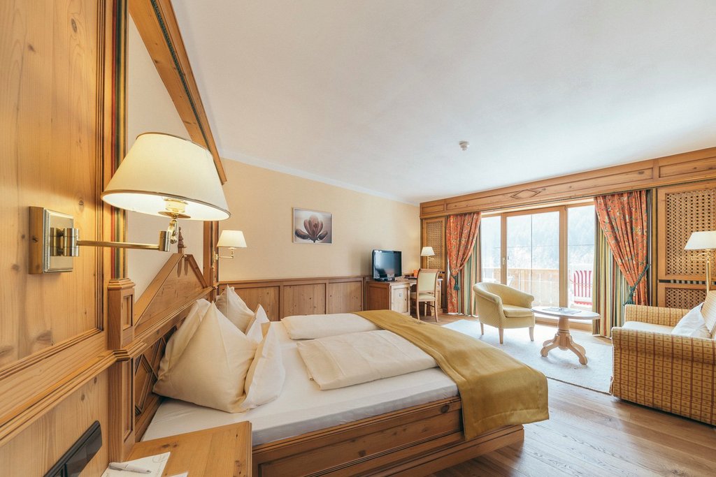 Die Juniorsuiten Classic liegen im angrenzenden Haupthaus und sind direkt an das Ayurpura angeschlossen. Sie haben eine Größe von 45 qm, sind im traditionellen Stil eingerichtet und ausgestattet mit einem Eichenparkett-Boden. Sie verfügen über ein eigenes Bad sowie einen begehbaren Kleiderschrank und einen geräumigen Südbalkon. Ein Safe, Sat-TV, Kosmetikspiegel, Haartrockner und WLAN stehen Ihnen auf den Zimmern zur Verfügung. Das Doppelzimmer kann auch zur Alleinnutzung gebucht werden. (Beispielbild)