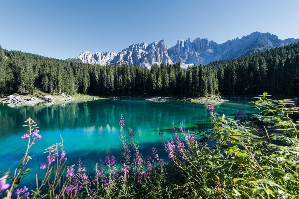 Unternehmen Sie unbedingt einen Ausflug zum Lago die Carezza (Karer-See). Dieser kleine Bergsee liegt etwa 15 Autominuten entfernt und bietet einen spektakulären Ausblick auf die Bergspitzen der Dolomiten. Am besten fahren Sie schon früh am Morgen zum See, dann können Sie die ruhige Atmosphäre noch für sich alleine genießen.