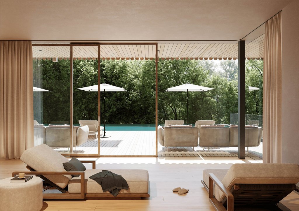 Die Pura Zimmer befinden sich im modernen Neubau. Sie sind ca. 25-30 qm groß und verfügen über einen Balkon, einen Naturholzboden, raumhohe Glasfronten und ein offenes Bad, welches harmonisch in den Raum integriert ist. Alle Zimmer sind ausgestattet mit Safe, Sat-TV, Kosmetikspiegel sowie Haartrockner und verfügen über eine Sitzecke. WLAN steht hier bewusst nicht zur Verfügung. Das Doppelzimmer kann auch zur Alleinnutzung gebucht werden. (Beispielbild)