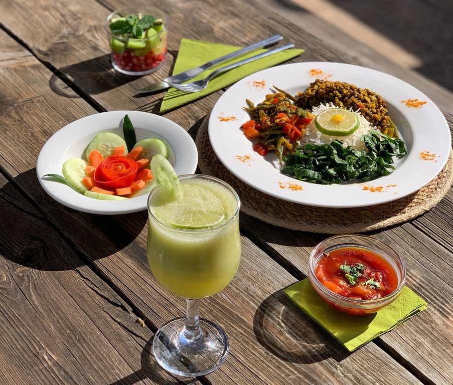 Während Ihrem Ayurveda Urlaub auf Mallorca erhalten Sie eine ayurvedische, vegetarische Vollpension. Indische Aromen werden kombiniert mit mediterranen Zutaten aus der Region. Der Anspruch des Küchenteams ist es, Ihnen ein Erlebnis zu bieten, das Gesundheit und Geschmack vereint. Der Ayurveda-Spezialist erstellt Ihre Menüs basierend auf Ihrer Konstitution, um so Ihr Dosha-Gleichgewicht wieder herzustellen und Ihr Wohlbefinden zu unterstützen.